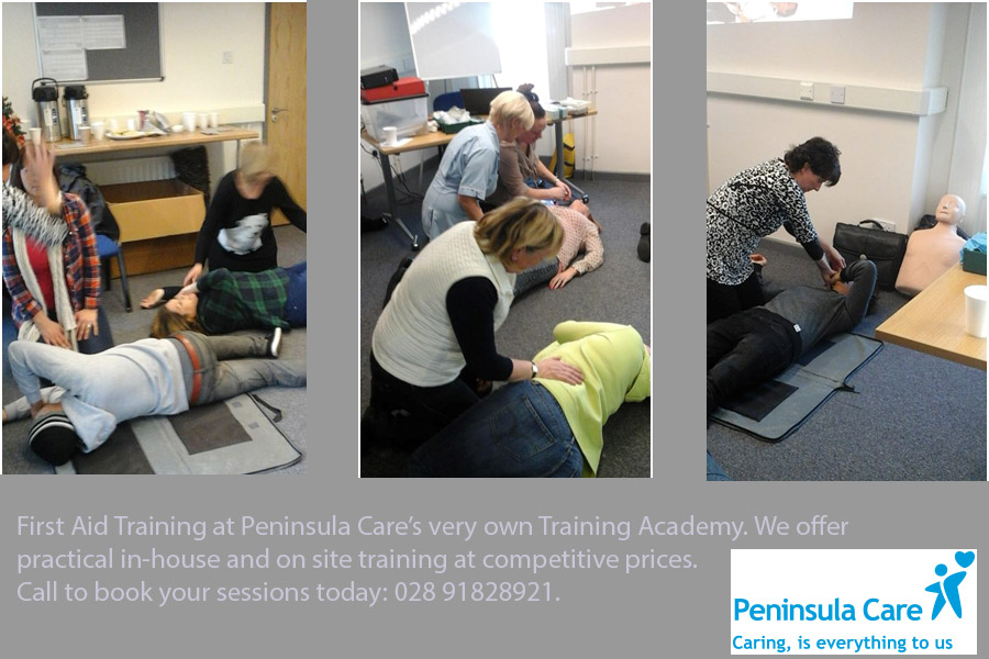 Check out some of the pictures from¬†Peninsula Care’s¬†latest First Aid training session held at our Newtownards training academy. Thanks to all our lovely models. We provide practical training in a fun and relaxed environment for all to enjoy. Stay tuned for upcoming sessions.