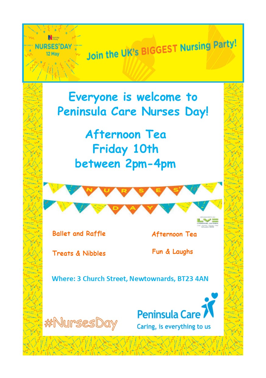 We will be hosting an informal “get-together” and Open Day in our Headquarters in Newtownards to celebrate International Nurses day from 2-4pm.